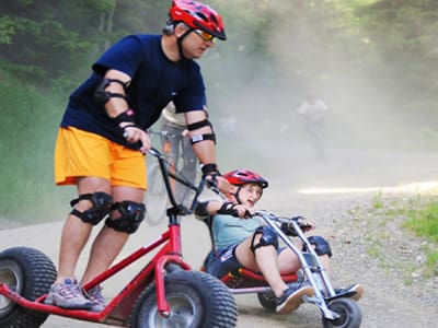 Mountain adventure park in Slovenia offers downhill karting. Perfect for active parents and teenagers.